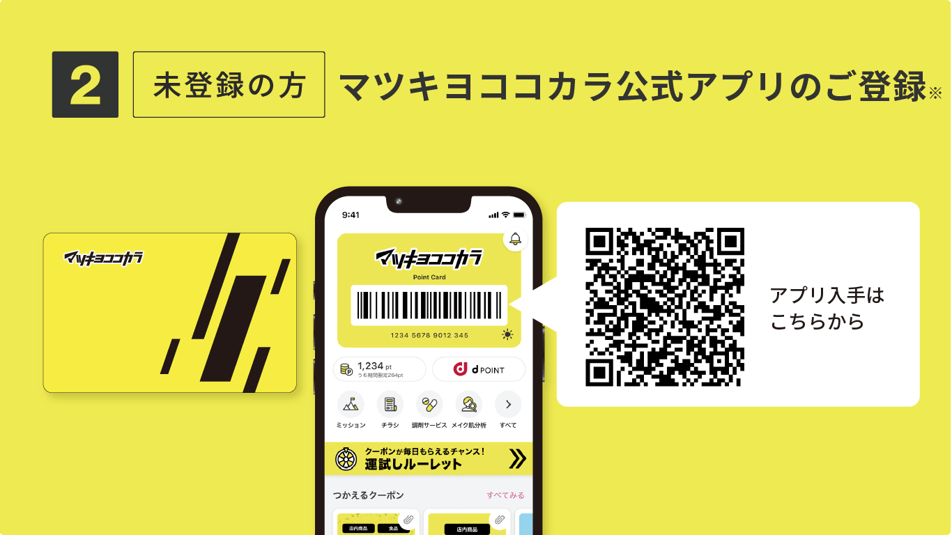 マツキヨココカラ公式アプリをご利用でない方は、下記のQRコードまたはこちらからダウンロード・登録をお願いいたします。